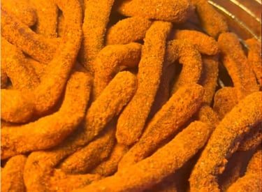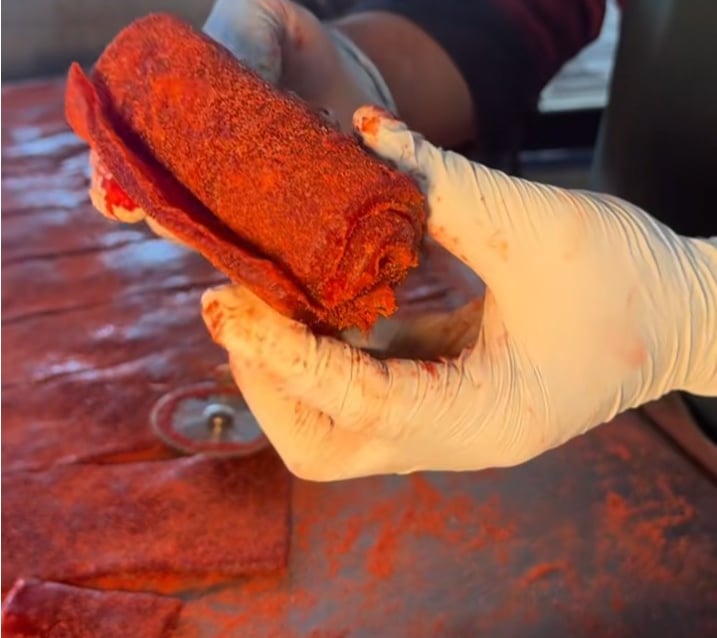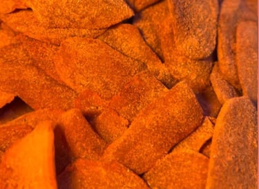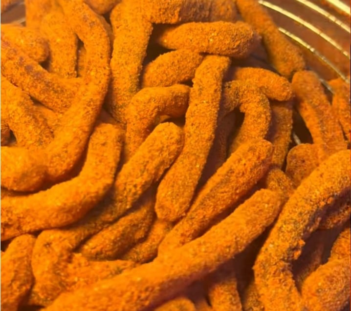 Gummy worms coated and sprinkled with a chili powder mixture.